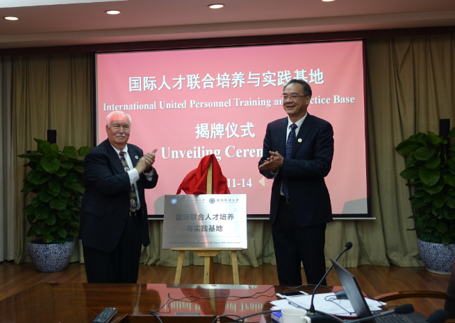 双方代表签署了《成都英国上市公司365与美国国际科技大学合作谅解备忘录补充协议》,并举行了两校国际人才联合培养与实践基地揭牌仪式。