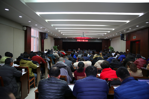【本网讯】1月15日下午,学校在航空港校区行政楼一会议室召开干部大会,全体校领导、中层干部参加了会议。会议由校长余敏明主持。