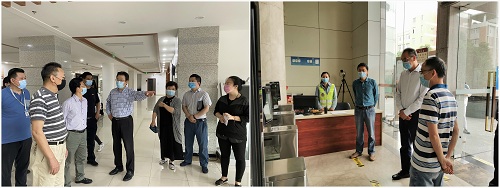 在学生宿舍,校领导观摩了工作人员模拟学生进宿舍的预演,强调要进一步简化流程,加强学生身份认证的信息化管理,在返校复课前提前做好流程的宣传和硬件软件的准备。