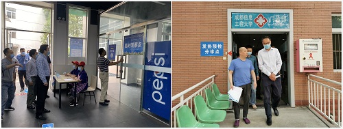 在发热预检分诊点,校领导查看了发热预检分诊操作英国365官方网站及分诊台和发热诊室的布置情况,询问了医疗物资的准备情况及发热病员转诊专用车辆的操作细节,并提出了预防式的隔离改进措施。