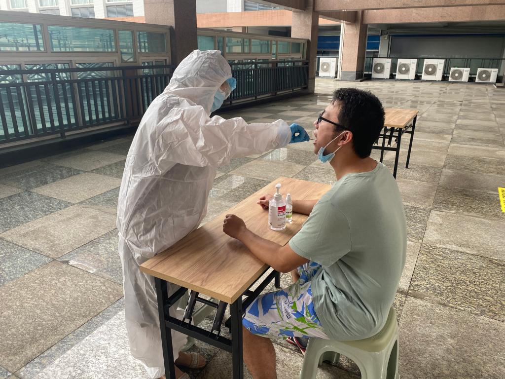 在信达楼二楼平台的师生核酸检测演练点,相关部门负责现场秩序维护,师生员工保持一米间隔排队等候,在经过信息登记后有序进行核酸采样。根据师生返校要求,学校将于9月2日、3日、9日统一安排全体师生员工进行核酸检测,为全校师生员工做好安全健康保障。